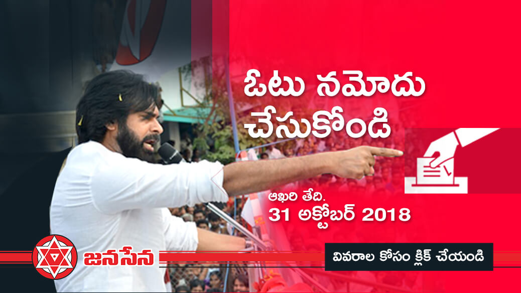 అర్హులైన ప్రతీ ఒక్క జనసైనికుడు ఓటు నమోదు చేసుకోవాల్సిందిగా మనవి